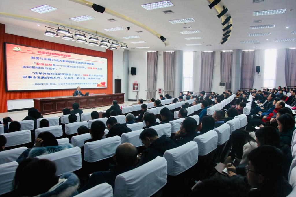 为深入学习宣传贯彻党的十九届四中全会精神,进一步用全会精神统一思想、凝聚共识,根据市委统一部署,12月26日上午,学院党的十九届四中全会精神宣讲报告会在清泽楼报告厅举行,党委书记马跃启同志作宣讲报告。学院领导宋桂言、赵君堂、李瑞昌、郭晓辉、刘德强,学院中层干部和教师代表、学生代表参加报告会。 马跃启以“新时代中国之治的行动纲领”为题,围绕“会议召开的时代背景”“坚定中国特色社会主义制度自信”“中国特色社会主义制度的显著优势”“新时代中国之治的战略部署”四个方面的问题,深入阐释了党的十九届四中全会的重大意义和中国特色社会主义制度与国家治理体系的显著优势,对全会《决定》提出的总体要求、总体目标和重点任务进行了系统解读,对认真学习宣传贯彻党的十九届四中全会精神谈了认识体会。 马跃启指出,要把学习宣传贯彻习近平总书记重要讲话和党的十九届四中全会精神作为一项重大的政治任务,切实增强“四个意识”、坚定“四个自信”、做到“两个维护”,坚持制度优势,优化治理体系,完善制度集成,提高治理效能,把党的十九届四中全会确定的各项目标任务落实到位。他还结合自己的亲身经历,以个人的视角阐述“我们党领导人民创造了世所罕见的经济快速发展奇迹和社会长期稳定奇迹,中华民族迎来了从站起来、富起来到强起来的伟大飞跃”,大大激发了参会师生的爱国热情。 宣讲报告聚焦重点和关键,内涵丰富、系统全面,深入浅出、鲜活生动、论述精辟,令参加宣讲报告会的师生深受启迪,倍受教育。大家纷纷表示,要把学习贯彻四中全会精神与“不忘初心、牢记使命”主题教育结合起来,同履行自己教学、学习职责义务结合起来,确保全会精神落到实处、见到实效。(王立志供稿)