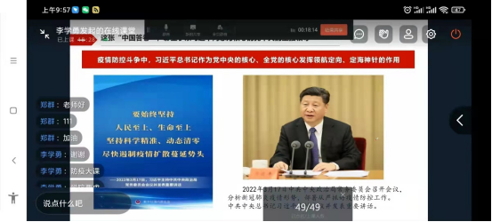 疫情防控一线是最鲜活的思政课堂。抗击新冠肺炎疫情既是一堂政治制度和国家治理模式全方位比较的全球公开课,也是一堂开放式、体验式的增强“四个自信”的公开课。为讲好防疫抗疫故事,彰显中国力量,思政部组织骨干教师精心设计策划,充分挖掘疫情防控中的育人元素,进行集体备课,及时开发了《读懂新冠疫情防控的“中国答卷”》教学专题。3月28日—4月1日,全体思政课老师通过钉钉直播、在线课堂等形式为各自授课班级上了一堂精彩的疫情防控思政大课。一个个感人故事,一张张生动图片,一个个精彩视频,彰显了以习近平同志为核心的党中央的坚强领导;显示了中国特色社会主义制度的显著优势;见证了中国人民坚韧奉献、守望相助的民族精神;检验了我国治理体系和治理能力的效能水平;展现了改革开放以来积累的雄厚物质技术基础;书写了践行人类命运共同体理念的大国担当。