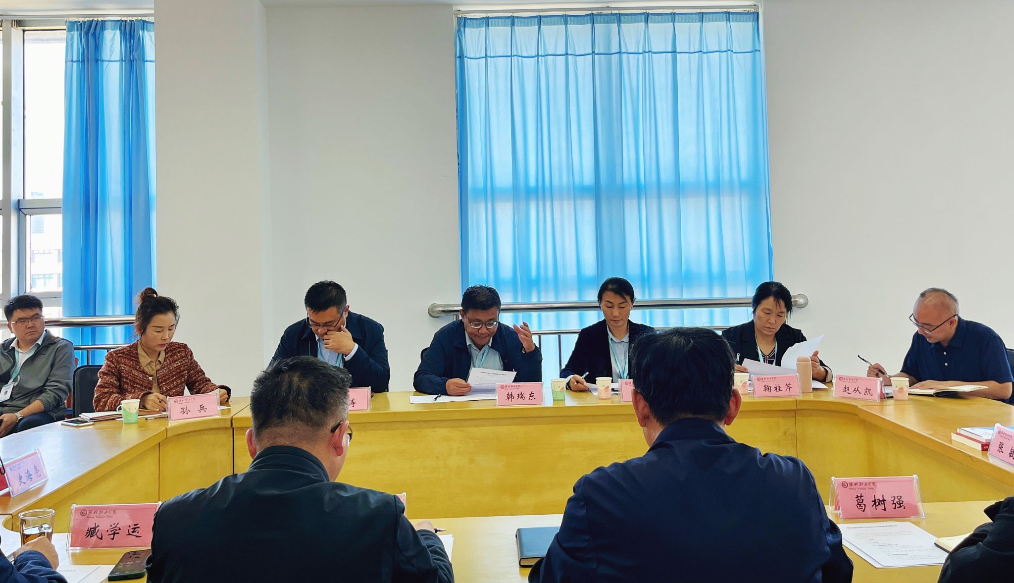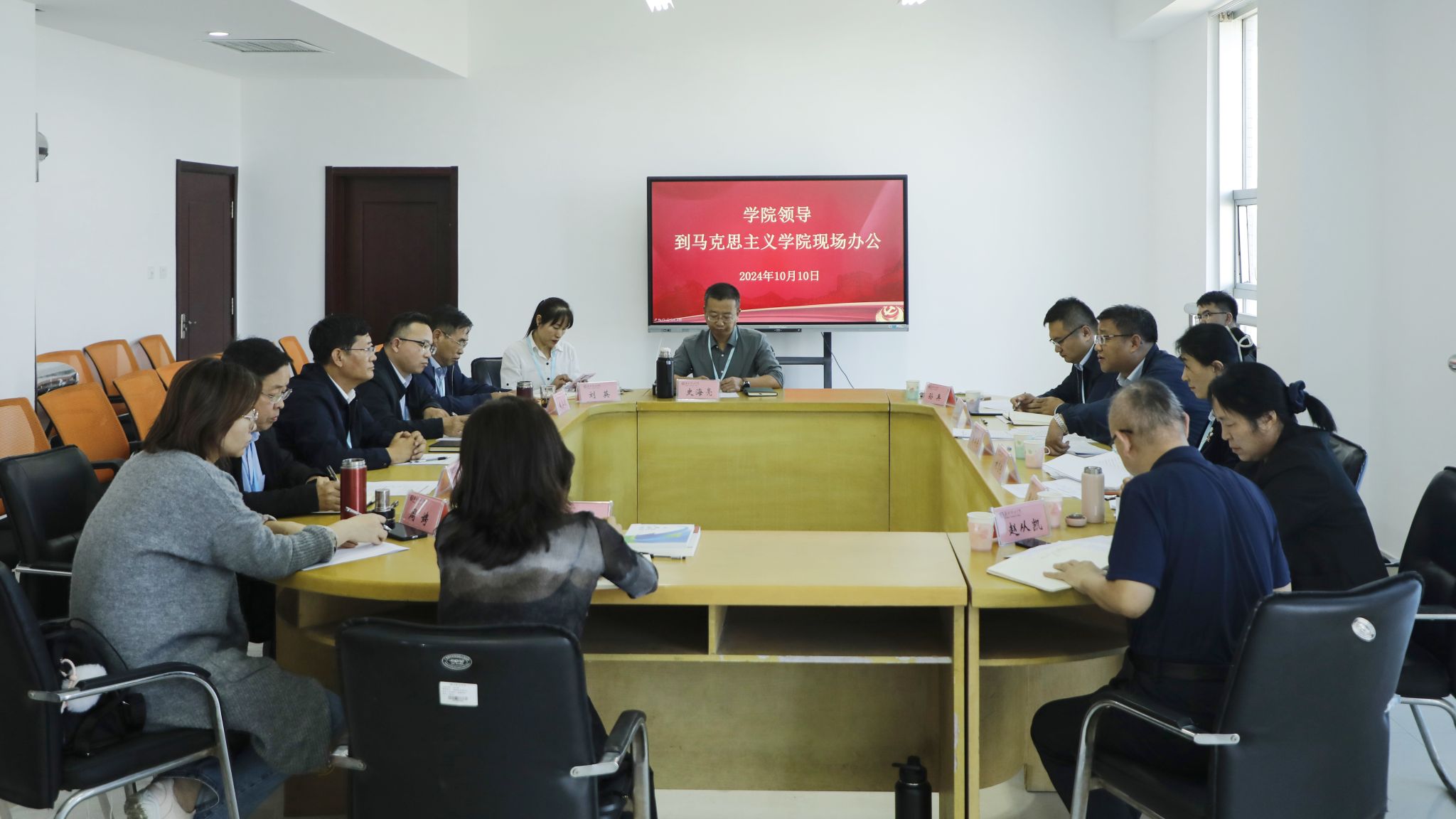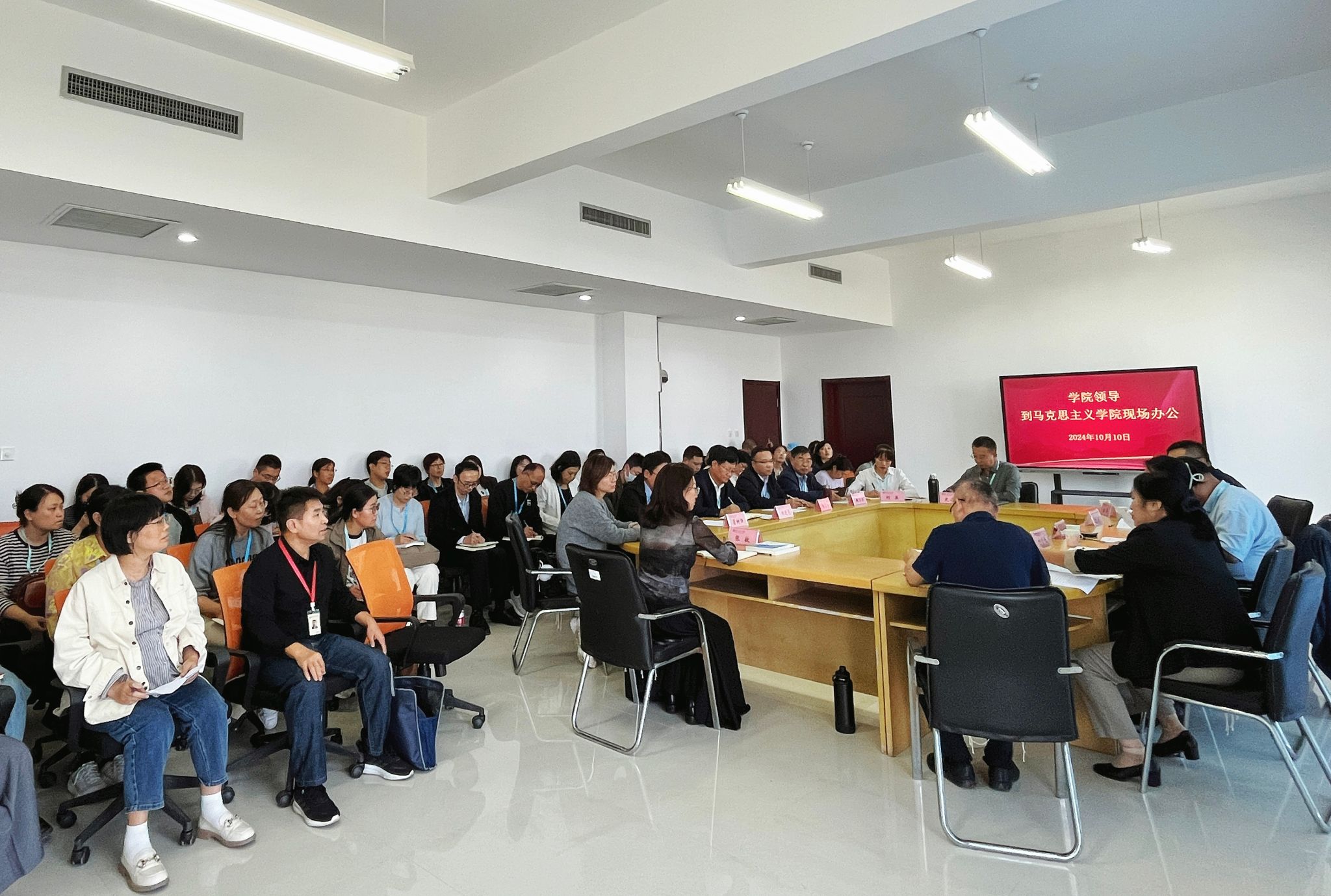 10月10日下午,学院党委副书记韩瑞东到yl6776永利集团现场办公,研究解决有关问题并召开全体思政课教师会议。党委委员、办公室(统战部)主任(部长)刘志艳,党委委员、组织人事处(离退休工作处)处长于涛,党委委员、宣传部部长鞠桂芹以及教师工作部、教务处主要负责同志参加现场办公。