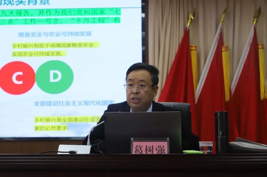 葛树强以《践行新发展理念 赋能乡村全面振兴》为题,围绕准确认识“乡村振兴”的背景与意义、深刻把握“乡村振兴”的面临新形势、扎实推进政策落地助力乡村全面振兴、“三个模式”打造成乡村振兴齐鲁样板四个方面的内容,为大家作了精彩的宣讲。
