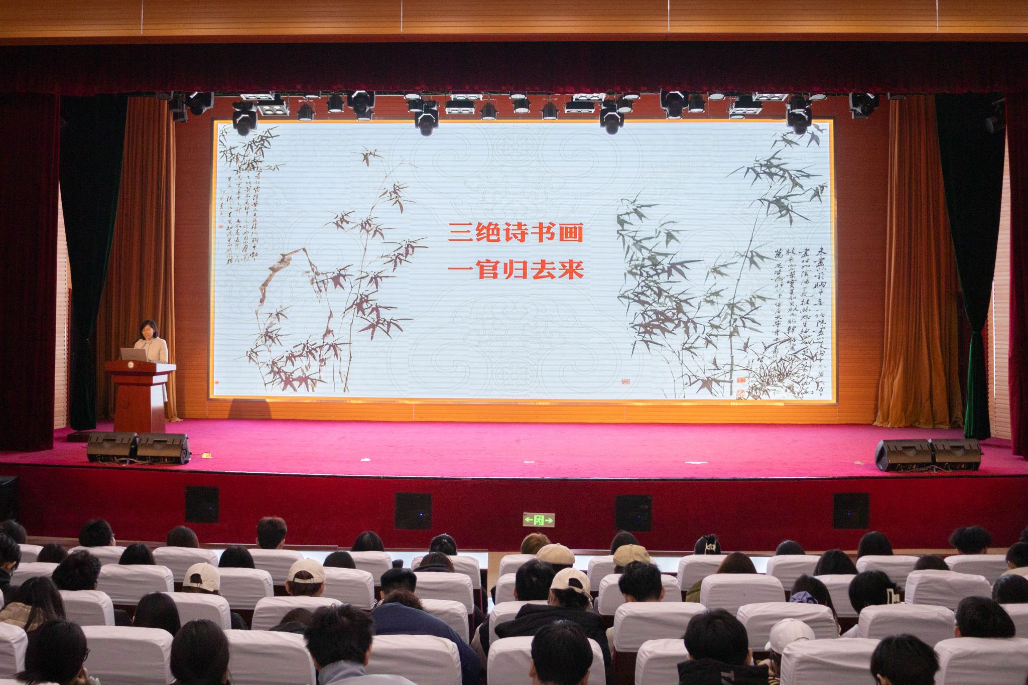 本次讲座立足于引导青年大学生感受郑板桥的人生智慧与其艺术作品中流淌的人文情怀,内容丰富,情感洋溢。讲座结束后,同学们纷纷表示,不仅领悟了“聪明难,糊涂尤难”的辩证智慧,还学习了“一枝一叶总关情”的济世精神,在专业追求层面也树立了“四十年来画竹枝”的匠心底色。(常方亮 邢颖供稿)
