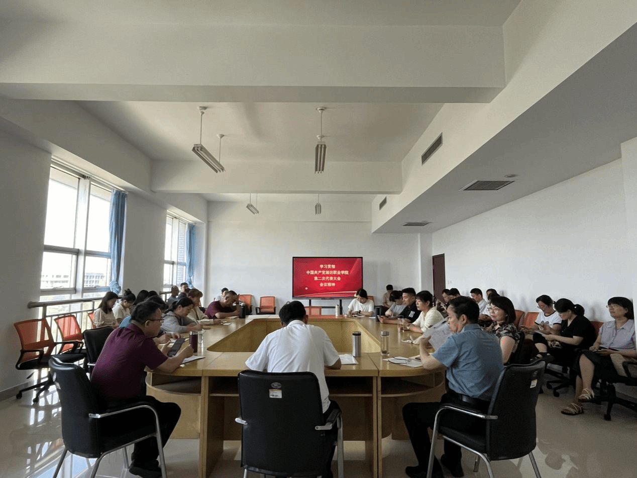 会上,邢同胜、邢庆亮分别传达了学院第二届党代会会议精神,并带领全体教师深入学习学院党委书记王浩所作的《凝心聚力谱写内涵建设新华章、改革攻坚构建服务发展大格局,为打造高水平专业集群、创建高水平职业技术大学而努力奋斗!》的工作报告,报告系统擘画了学院未来发展的宏伟蓝图,明确了奋斗目标,为学院高质量发展指明了方向。