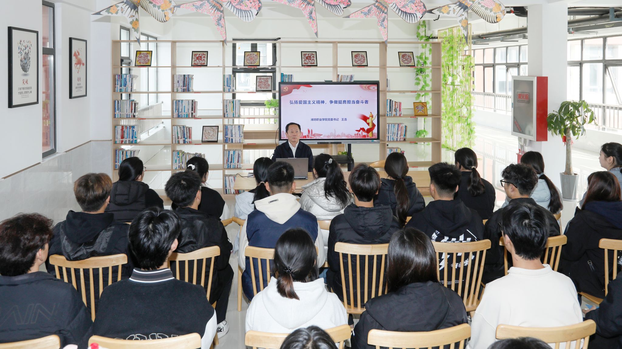 王浩走进“励新”学生社区,以“弘扬爱国主义精神,争做挺膺担当奋斗者”为题,从剖析爱国主义的四维价值、探索爱国主义的精神基因、坚守爱国情怀与报国志向、争做新时代的忠诚爱国者四个方面,结合我国悠久的历史渊源和复杂的国际形势、丰富的典型案例和感人的人物故事、中华优秀传统文化和我国经济社会发展取得的伟大成就,以及我国治理模式与西方的比较研究,为学生上了一堂精彩的爱国和国防思政课,号召广大同学提升能力、塑造价值、成就出彩人生,为民族复兴和国家富强做出积极贡献。党委委员、办公室主任刘志艳及yl6776永利集团、信息工程学院、经营管理学院、国际商务学院师生代表聆听授课。