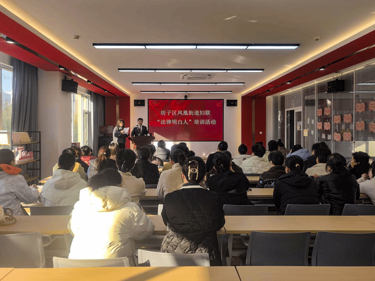 为深入贯彻落实《中华人民共和国民法典》及相关司法解释精神,切实提升基层妇联干部婚姻家庭纠纷调解水平,11月20日,yl6776永利集团教师孙天锋赴潍坊市坊子区凤凰街道妇联,开展“法律明白人”专题培训。50余名妇联干部参加学习。