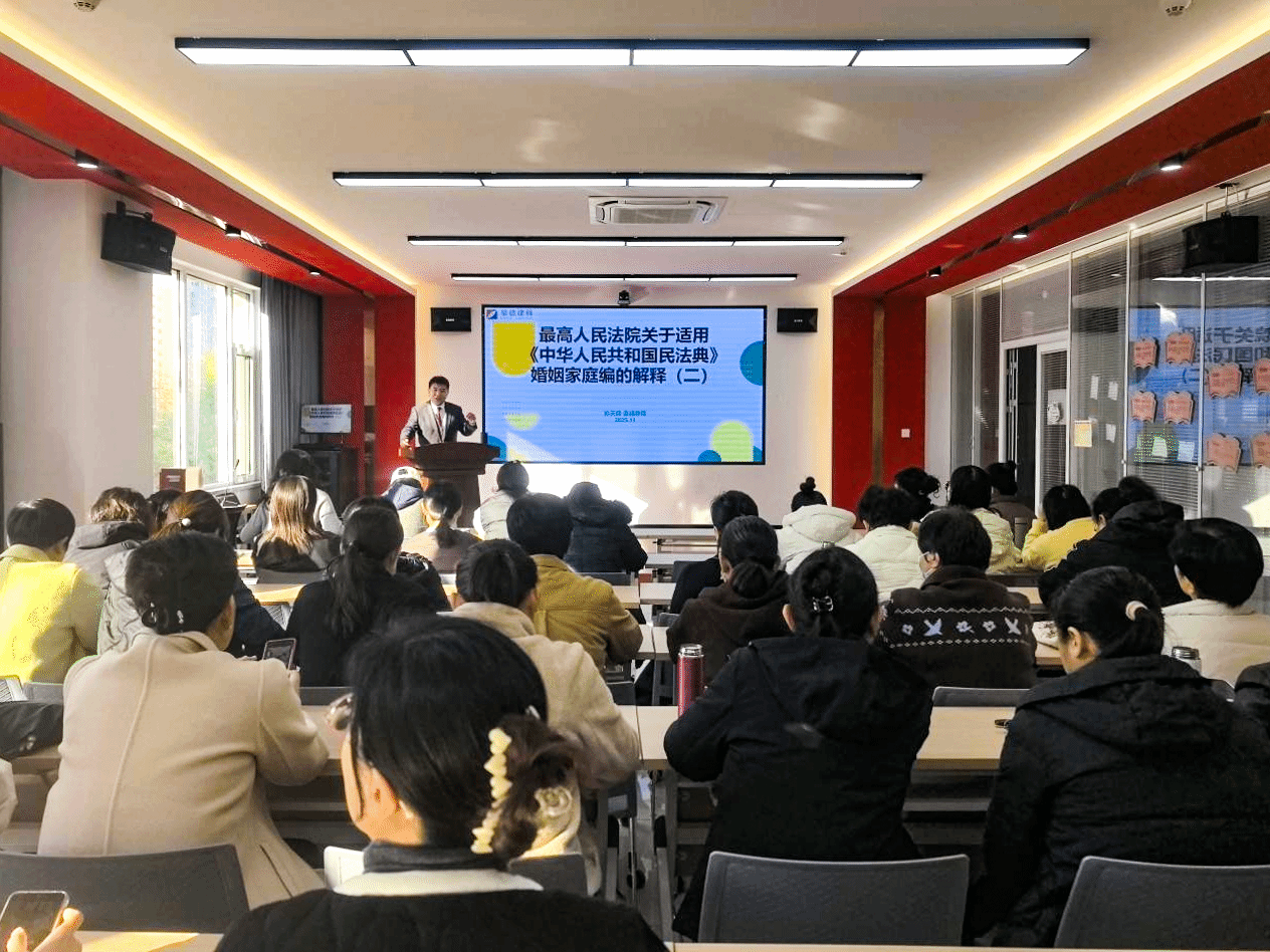 孙天锋以《中华人民共和国民法典》婚姻家庭编解释(二)为核心,结合山西大同订婚强奸案等典型案例,聚焦基层妇联实际工作痛点。他系统解读了重婚无效认定、“假离婚”法律效力、离婚财产分割等条款,并针对父母出资购房分割、未成年子女维权、离婚经济帮助等问题,讲解了法律适用规则与调解技巧。