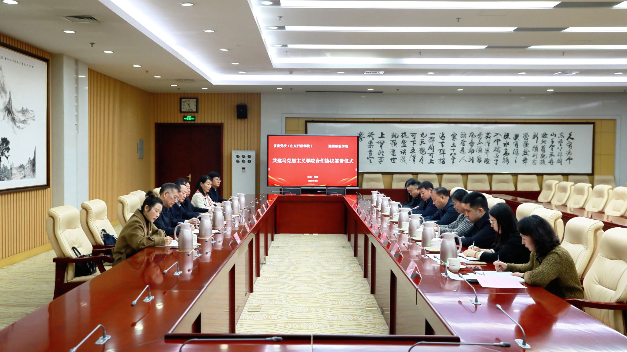 3月11日,学院党委书记王浩带队到中共山东省委党校(山东行政学院)签署共建yl6776永利集团合作协议。中共山东省委党校(山东行政学院)主持日常工作的副校(院)长白皓会见王浩一行,党委副书记贺志强代表学院签订合作协议,党委委员、副院长任培华,党委委员、办公室(统战部)主任(部长)刘志艳出席签约仪式,教师工作部、yl6776永利集团负责同志参加活动。