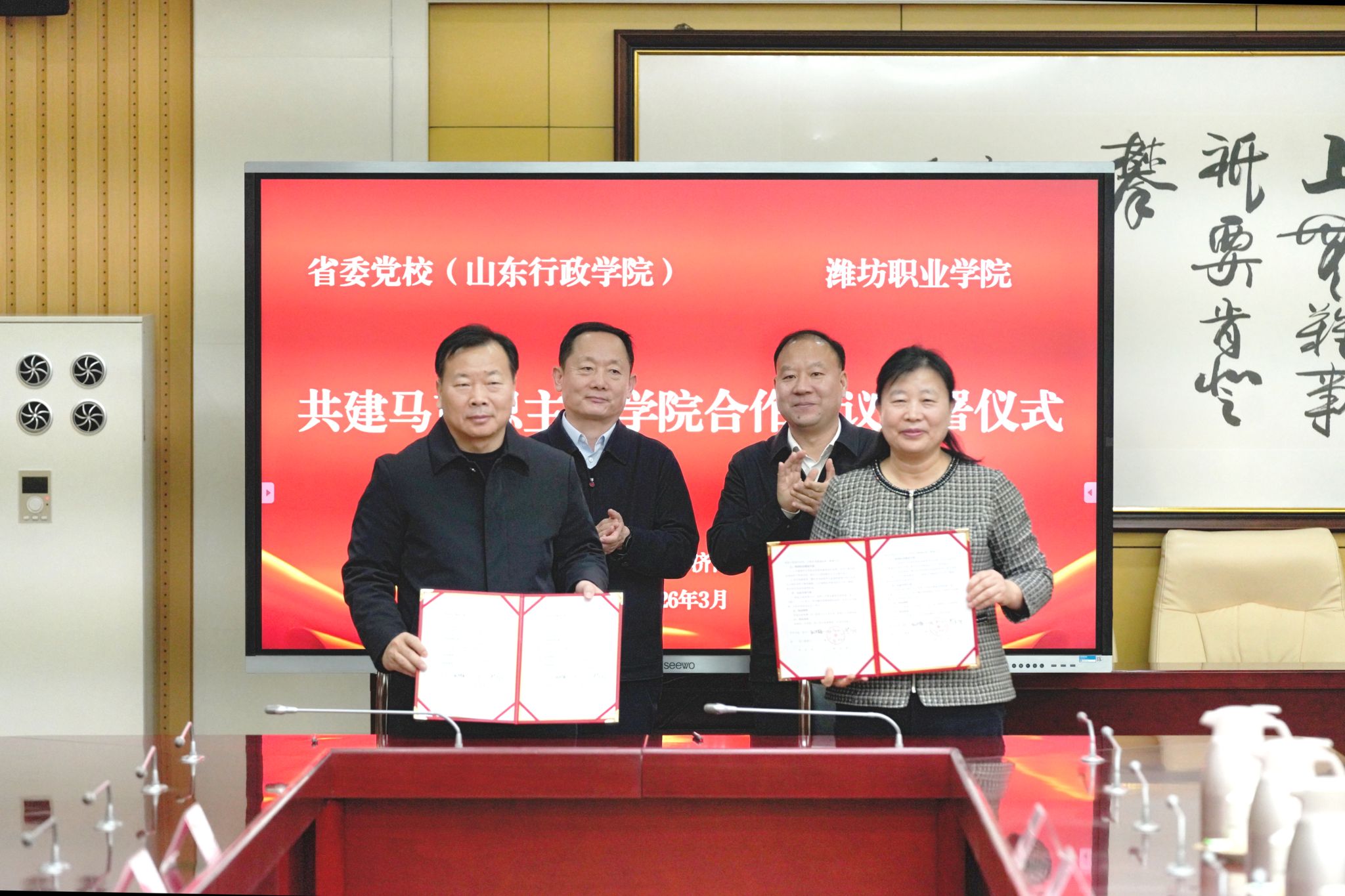 学院与中共山东省委党校(山东行政学院)签订共建yl6776永利集团合作协议,是我院思政课建设史上的一件大事,为我院教师队伍建设搭建了高端合作平台,对提高教师政策理论水平、促进师资内涵式发展做出积极贡献。(邢庆亮供稿)