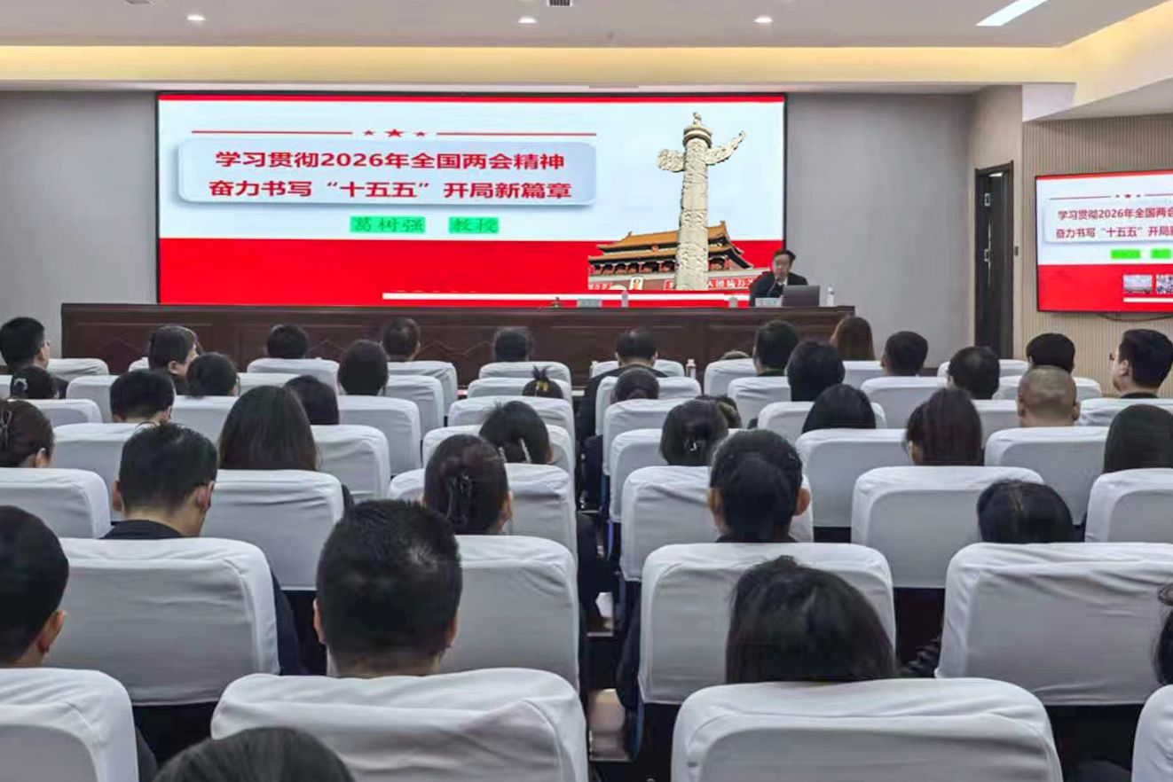葛树强紧扣时代发展脉搏,以《学习贯彻2026年全国两会精神 奋力书写“十五五”开局新篇章》为题展开宣讲。宣讲聚焦“十五五”开局之年发展大势,从“全景”“核心”“落实”三个维度,深入阐释全国两会的时代意义与战略价值,系统解读政府工作报告中的核心要义与政策导向,并结合“十五五”开局之年重点任务,就如何将蓝图愿景转化为路线图施工图的具体行动路径提出实践建议,为企业高质量发展注入了强劲的思想动能。